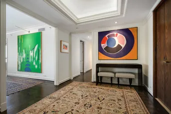 Stunning high-floor luxury residence with sweeping lake views in the heart of the Magnificent Mile. This 2,974sqft expansive 3-bedroom, 3-bath condo offers breathtaking lake and city views from every window. A gracious gallery-style foyer with tray ceilings opens to beautifully appointed living and dining spaces featuring walnut herringbone floors, crown molding, art lighting, and motorized shades. The formal dining room is highlighted by a striking glass chandelier. The third bedroom is currently used as a sophisticated family room with walnut paneling and wet bar. The kitchen offers an eat-in area, walk-in pantry and attached laundry area. The serene primary suite features a walk-in closet with custom built-ins, a spa-like bath with double vanities, soaking tub, separate shower, and private sauna. Laundry room with side-by-side washer/dryer and exceptional storage throughout. Full-service luxury building with 24-hour door staff and concierge. Optional Carlton Club membership provides access to Ritz-Carlton spa, fitness center, indoor pool, dining, and lifestyle amenities. An exceptional Mag Mile offering. Property is sold as-is.